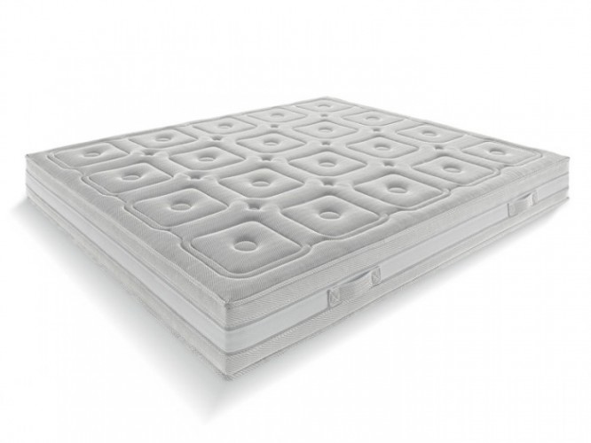 La particolare ricamatura a disegno geometrico piazzato e la raffinata fascia perimetrale con tessuto 3-space traspirante racchiudono un’anima a micromolle indipendenti capace di modellarsi attorno alle forme del corpo sostenendolo in modo calibrato in ogni suo movimento.