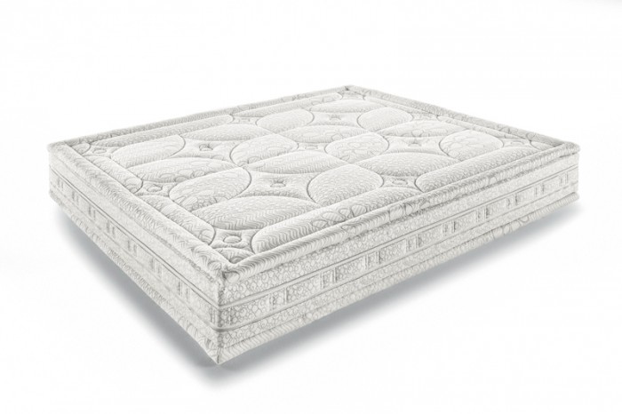 Un profilo scanalato in Lympha® da 35 mm. sui due lati protegge la struttura a 1600 micromolle con 7 zone di portanza. Il rivestimento, ricamato con soffice trapuntino a disegno geometrico piazzato e arricchito di una fascia perimetrale con multimaniglia trapuntata in continuo, è interamente sfoderabile sui 4 lati. Il materasso, di 26 cm. di spessore, è disponibile in due diversi gradi di sostegno (Firm e Medium) e con 5 differenti tipologie di imbottitura.