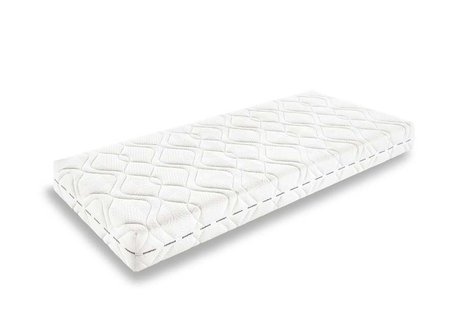 Materasso realizzato con struttura in Evocell (densità 30 kg./mc.) con canali trasversali su ambo i lati. Sfoderabile e di spessore ridotto, è imbottito con fibra termica di poliestere anallergica e traspirante, con tessuto protetto dal trattamento Sanitized®.