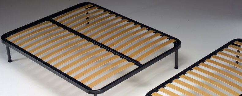 Rete ortopedica a doghe in legno, con telaio in acciaio. Completa di piedini rete finita h. 35cm.